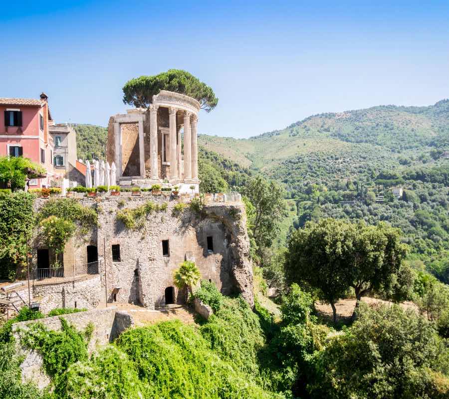 Tivoli – Stojąc u podnóża Wzgórz Tyburtyńskich, będących jednym ze źródeł zaopatrujących Rzym w trawertyn, rozpoczynamy naszą wycieczkę od ruin Willi Hadriana. Miejsce to w czasach antycznych budziło zachwyt i podziw. Villa została wybudowana na zlecenie Hadriana między 118 a 134 rokiem n.e., aby przypominała najwspanialsze momenty panowania cesarza; dokumentowała jego niezliczone wyprawy i podróże po Imperium oraz utrwalała jego chwałę poprzez – wybudowane przez niego lub dla niego – liczne budowle i monumenty.